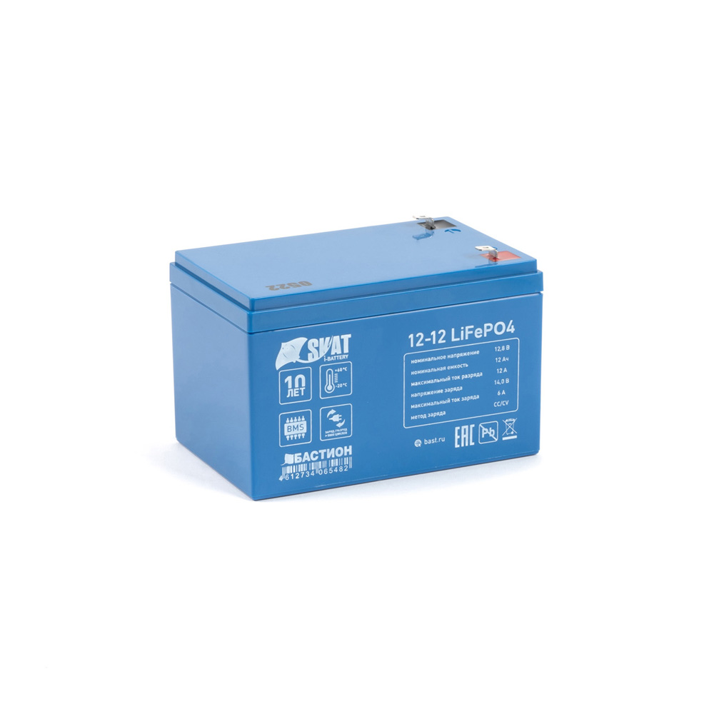 12 В, 12 Ач, тип клеммы — F2 нож, вес — 1,7 кг, температурный диапазон от -20°C до +60°C, элемент IFR 26650, структура 4S4P, срок службы — 10 лет, расширенная гарантия