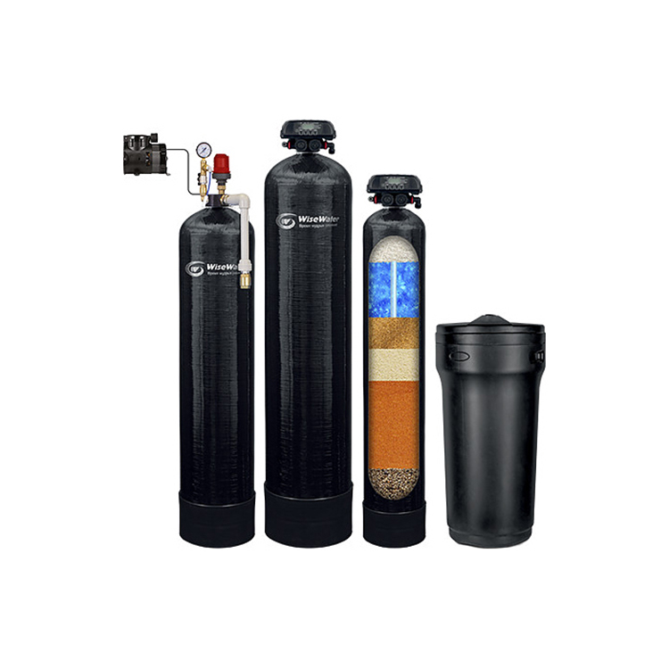 Особенности и преимущества: дисковый механизм управления переключением потоков воды, неизменяемые предустановки стадий промывки, автоматизация работы системы по времени; аэрационная колонна: насыщает обрабатываемую воду кислородом с помощью воздушного компрессора, предварительно окисляет железо и органические соединения, удаляет агрессивные углекислоты и сероводород (удаление неприятного запаха), препятствует развитию микроорганизмов на загрузке фильтров, позволяет избежать потерь давления при прохождении воды через аэратор; фильтр-обезжелезиватель: удаляет растворённое и нерастворённое в воде железо с помощью процесса окисления, задерживая выпавшее в осадок железо в толще наполнителя, снижает мутность воды, наполнитель IronX является катализатором реакции окисления соединений железа растворенным в воде кислородом, регенерация фильтра не требует использования реагентных материалов и производится в автоматическом режиме с помощью электронного управляющего клапана по сигналу таймера; универсальный фильтр с комплексной загрузкой ProMix: снижает содержание в воде ионов кальция и магния до рекомендуемого уровня 1,5-2,5 мг-экв/л, удаляет железо, марганец, аммоний и органические соединения природного происхождения, умягчает воду до комфортных значений, регенерация фильтра производится в автоматическом режиме с помощью электронного управляющего клапана по сигналу таймера или встроенного счётчика, функция двойной обратной промывки для большей эффективности, возможность как прямоточной, так и противоточной регенерации, автоматическое сохранение данных об основных параметрах работы за 2 месяца, резервный элемент питания сохраняет текущее время и остальные настройки, возможность регенерации в ручном режиме, легкий доступ к информации о потоке воды, времени до следующей регенерации, текущей дате и времени, сигнализация о технических неисправностя, простота сборки и обслуживания.